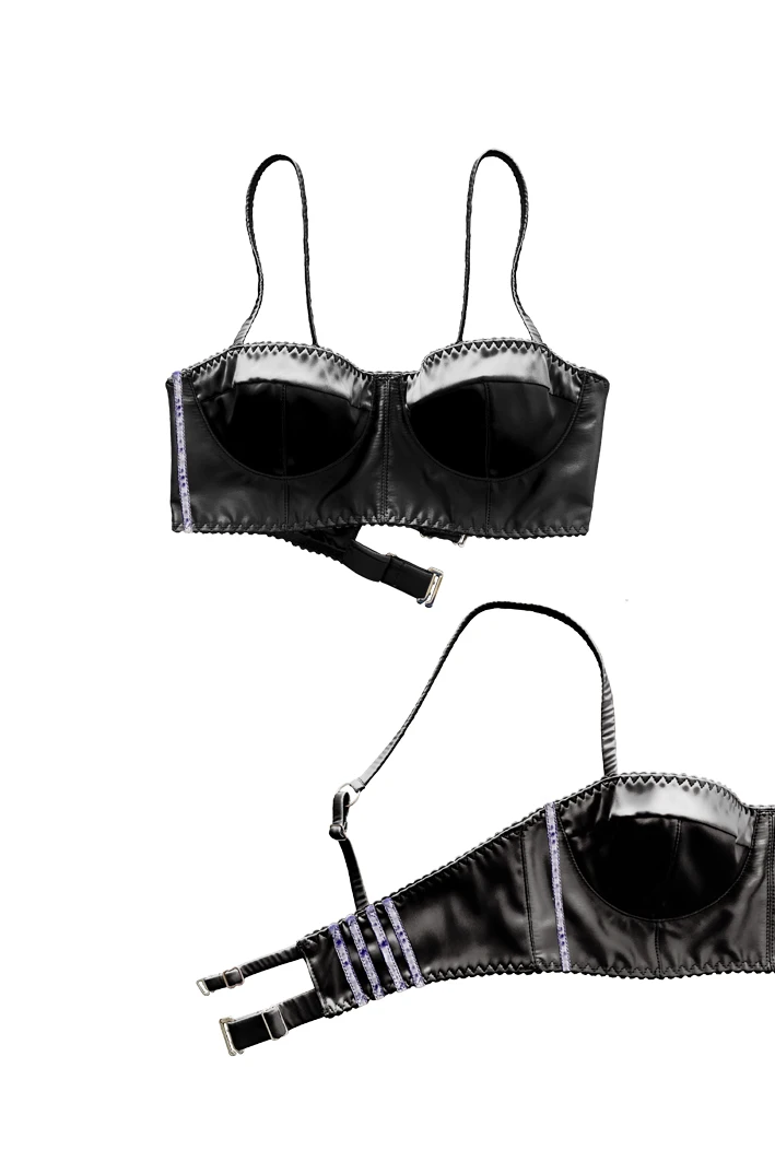 – Liquid ice-black satin bustier.